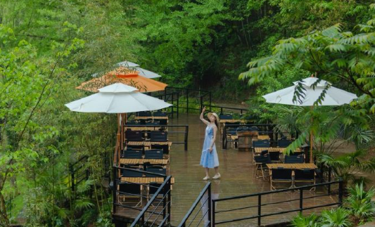 打卡网红瀑布咖啡馆